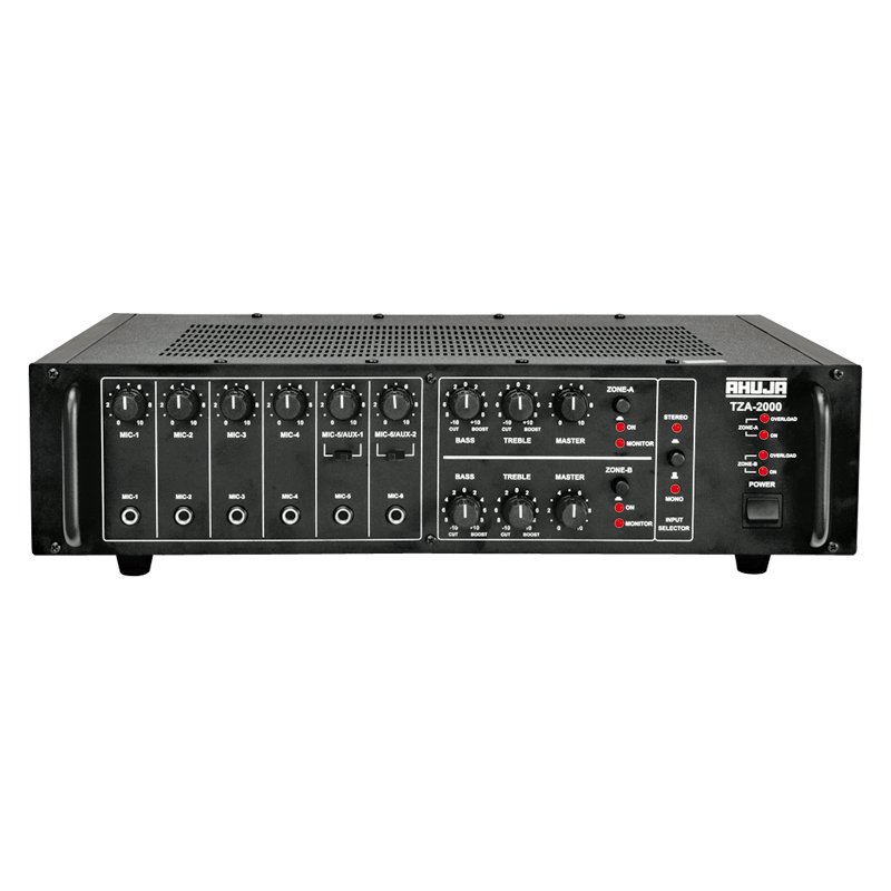 - TZA-2000 is ideal for medium sized installations such as in places of worship where two separate groups of speakers are needed to be connected.