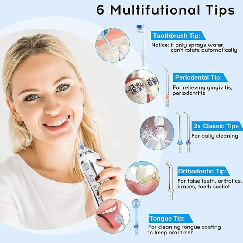 5. **Clean and Store**: After use, empty and rinse the water reservoir, and wipe down the exterior of the flosser. Store the device in a dry place until its next use.