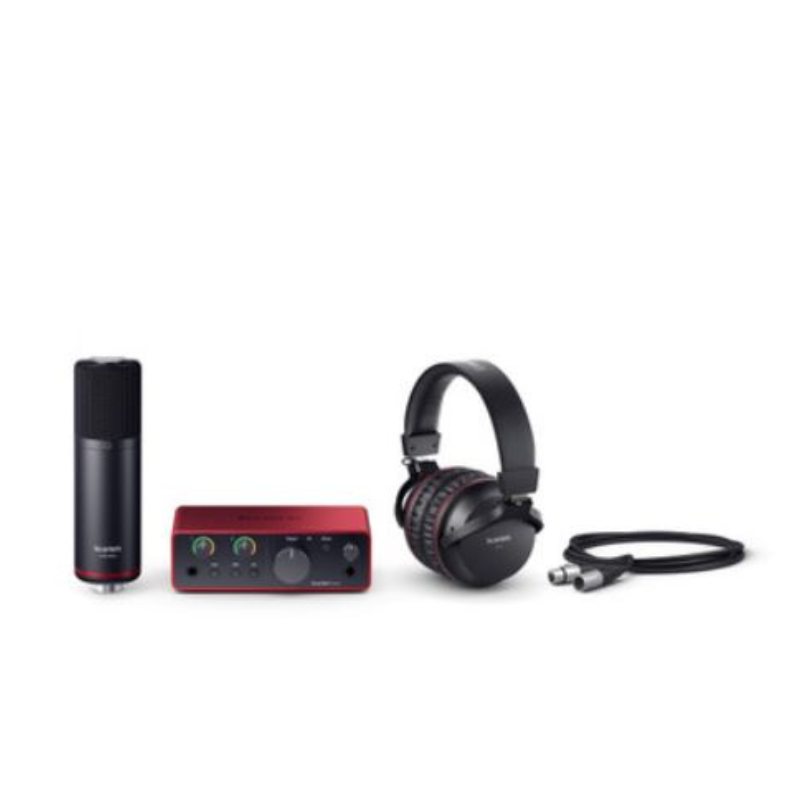 1. **Scarlett Solo Audio Interface**: Includes the Scarlett Solo interface with one high-quality mic preamp and one instrument input, providing excellent audio fidelity for recording vocals and instruments.
