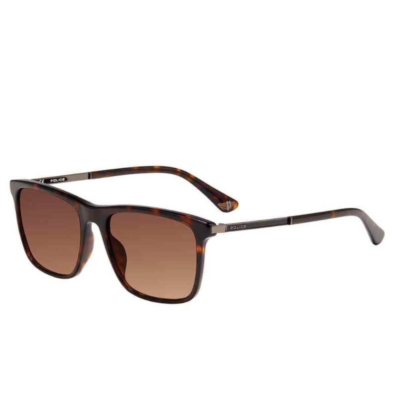 The Police SPLA56 COL.0722 145 sunglasses are a stylish and functional accessory designed for men. Featuring a full-rim rectangular frame in a polished dark havana and gunmetal color combination, they offer a sophisticated look suitable for various occasions. The brown gradient lenses provide effective UV protection while adding a touch of elegance to your ensemble.