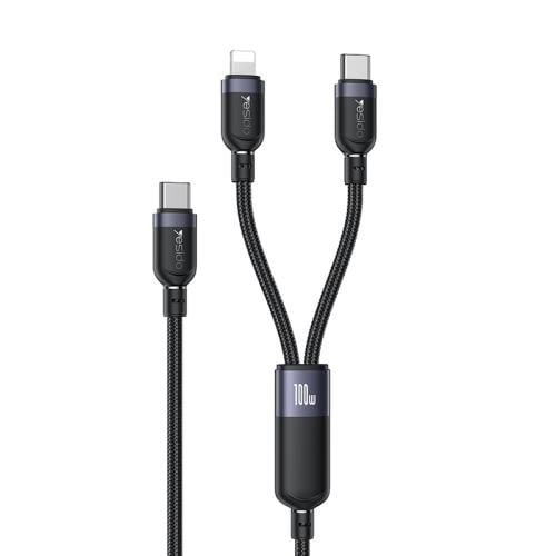 Yesido Data Cable CA90 Usb C to Usb C + Lightning 100w 1.2mtr