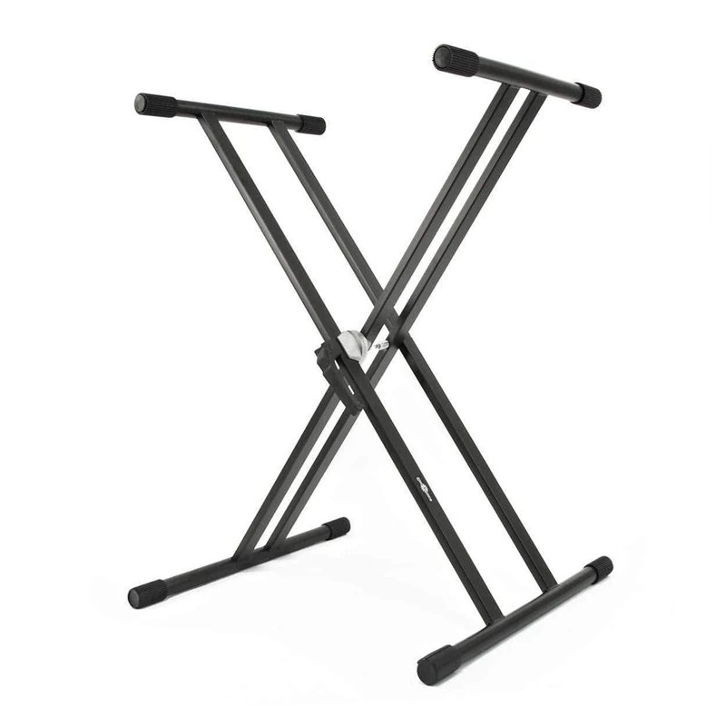 Double x-Frame Keyboard Stand is the perfect companion for pianists and keyboard performers who like to play either stood up or seated. Made from high-quality steel, along with a double circular toothed locking mechanism, this keyboard stand is built for extra durability. The stand also features rubber crevice feet grips, which ensure maximum stability on many uneven performance and rehearsal spaces. With a foldable and lightweight design, the stand is easy to transport and can be stored away with ease. The stand is compatible with many keyboards from 61 to full size 88 key digital piano and keyboards.