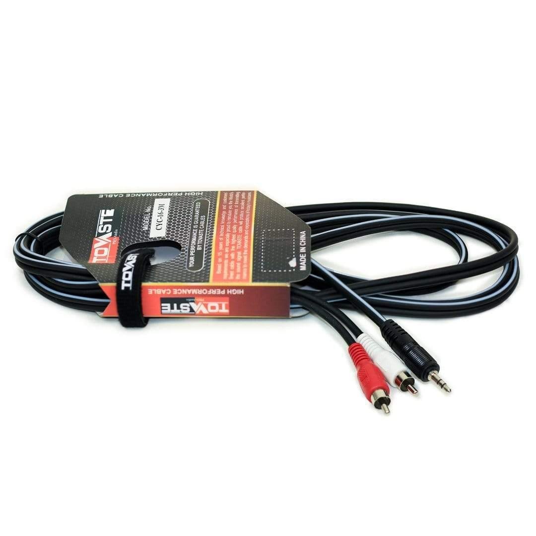 The Tolaye CYC163M is the perfect solution for integrating portable media players, smartphones, laptops, and other devices with a standard 1/8″ (3.5mm) output into professional or home stereo systems. This cable converts the stereo signal from a single 3.5mm TRS connection into the standard dual (Left and Right) RCA plugs, making it universally compatible with mixers, amplifiers, receivers, and powered speakers.